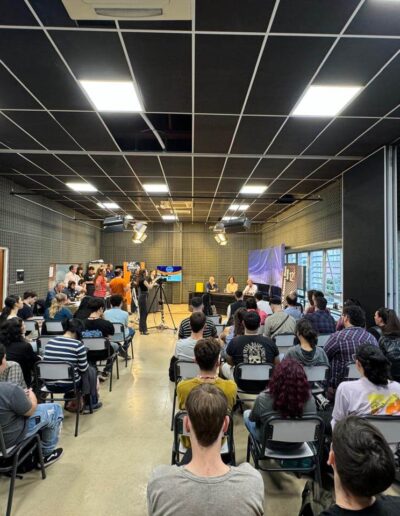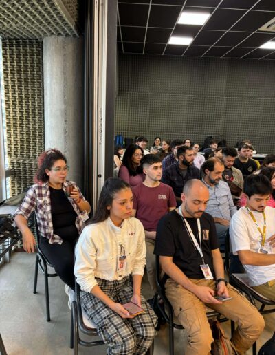 Durante la charla, los alumnos y alumnas de la Tecnicatura en Comunicación Social pudieron compartir sus experiencias y unas cuantas dudas y preguntas a los referentes periodistas invitados, quienes aportaron sus distintos puntos de vista sobre la profesión y compartieron experiencias propias de sus trabajos.