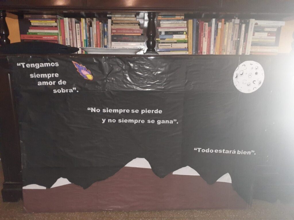 Los estudiantes de Bibliotecología estuvieron a cargo de la organización general del proyecto, el diseño de las dinámicas lúdicas y el montaje y ornamentación del lugar. Ellos conceptualizaron toda la propuesta buscando conectar los diferentes cuentos y desarrollar actividades lúdico-didácticas clave, como la creación de la estrella del cuento Cómo atrapar una estrella y la entrega de cuadernitos para El increíble niño comelibros, además de la dinámica de rastrear a los crayones que querían descansar, protagonistas del cuento “El día que los crayones renunciaron”:
